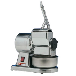 parmezánreszelő, 30 kg/óra elméleti kapacitással, 110x65 mm méretű betöltőnyílással, olajhűtéses fogaskerék meghajtással, polírozott alumínium burkolattal, Elektr.csatl.(V): 230, Elektr.telj.(kW): 0,38, Méretek (mm): 299x262x299