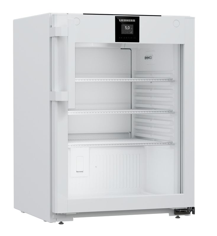 bruttó 137 literes, pult alá helyezhető gyógyszerészeti hűtőszekrény (DIN 13277 és IEC 61010-2-011 megfelelőség); ventilációs hűtési rendszer; elektronikusan zárható hőszigetelt ESG biztonsági üveg ajtó (PIN kód, távezérlés, SmartLock funkció); bal oldali LED világítás (teljes magasságban); LightAlarm: riasztás fényjelzéssel; hűtési tartomány: +5°C (gyárilag beállított, felhasználó által nem módosítható érték); ajtóba integrált 2,4" színes, Touch&Swipe érintőkijelző; digitális - 1/10 fok pontos - hőmérsékletkijelzés; tesztelhető és testreszabható optikai és akusztikus riasztási funkciók: túl magas/alacsony belső hőmérséklet, ajtó nyitva maradás és áramkimaradás, továbbá érzékelőhiba esetén (+5°C-os biztonsági üzemmód); Safety Device: biztonsági termosztát (megakadályozza, hogy a hőmérséklet +2°C alá essen); integrált adatmemória: elmúlt időszak (kb. 42 nap) min/max. hőmérsékleti értékeinek, valamint az utolsó 10 hőmérséklet- és áramkimaradás riasztási esemény eltárolása és kijelzőn történő megjelenítése dátummal, pontos idővel és időtartammal; USB interfész hőmérsékleti- (1 perces mintavételi gyakoriság esetén max. 5 évnyi adat), riasztási- és szerviz adatok lementésére; 1 ponton történő hőmérséklet kalibrálás: beállított és tényleges belső hőmérséklet közötti különbség 0,1°C pontosságú állítási lehetősége, 1 hőmérsékletre; áramszünet esetén a vezérlés külső hálózattól független áramellátása és jeltovábbítás min. 12 órán keresztül a beépített Li-ion akkumulátor segítségével; feszültségmentes érintkező, központi riasztórendszerre csatlakoztatható; integrált SmartModule: WiFi/Lan interfész adattovábbításhoz (SmartMonitoring); 6 hónapos ingyenes SmartMonitoring próba licenc; gyárilag csatlakoztatott, kalibrálható, fiktív termékhőmérséklet érzékelő szonda (PT1000); szonda bemenet (átmérő: 12 mm); hőmérsékletstabilitás és állandóság az EN 60068-3 mérési norma alapján: grádiens: 3,7 K, maximális fluktuáció: 2,9 K; billentyűzár; kívül fehér színű porszórt acél burkolat; opcionális hőálló fedlap; egy darabból öntött polisztirol (környezetbarát) belső burkolat; hátsófalba habosított elpárologtató (odafagyás elleni védelem); 3 db megerősített, 450x425 mm méretű, fehér színű védőbevonatos acél rácspolc, STOP funkcióval és leesésgátlóval; a polcok magassága 35 mm-ként állítható; polconkénti terhelhetőség: max. 45 kg; készülék maximális terhelhetősége: 180 kg; az ajtó 90°-os nyitási szög felett nyitva marad, ez alatt önműködően csukódik és nyitásának iránya megfordítható; higiénikus, cserélhető ajtószigetelés; antimikrobális nyitómechanizmusos fogantyú; automatikus - szükségvezérelt és manuálisan is indítható - leolvasztás; inverteres VCC (változtatható fordulatszámú) kompresszor; szintező talpak; FCKW-FKW mentes hűtőközeg (R 600a) és falszigetelés; külső hőmérséklet: +10/+35°C között - 7. klímaosztály; éves energiafogyasztás: 187 kWh, Elektr. Csatl.(V): 230, Elektr. telj. (kW): 0,06, Méret sz x m x ma (mm): 597×605×819